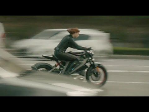 The film features an intense bike chase through the fictional European city of Sokovia in the MCU. Scarlett Johansson’s portrayal of Black Widow shines as she pulls off motorcycle stunts that no normal human could. After being dropped from the sky onto her Project LiveWire Harley, which somehow doesn't break upon impact—typical superhero landing—she smoothly rides her electric bike through the streets before effortlessly skidding under a truck with the bike safely between her legs, undamaged and without a scratch on her.