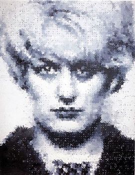 Scott Blake is known for crafting portraits of famous personalities using bar codes. His interest in bar code art began with the Y2K computer bug, which inspired him to create his first bar code mosaic of Jesus Christ with Photoshop. Since then, Blake has created approximately thirty portraits of icons such as Andy Warhol and Arnold Schwarzenegger. Additionally, he has designed interactive works where scanning the bar codes reveals images of the person depicted in the mosaic on a screen. This feature was incorporated into his portraits of Bruce Lee and Elvis Presley. For more information, visit here.