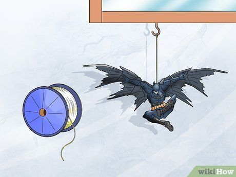 Use fishing line to suspend your action figure in mid-air. Wrap the fishing line around the figure’s waist and tie it securely. Cut off the excess and hang it from a suction hook, wall hook, or tack. This is a great way to hang figures below a display case or bookshelf.
