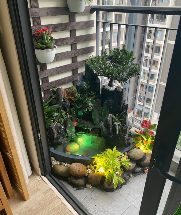 Apartment Balcony Miniature Landscapes with Fish Ponds
