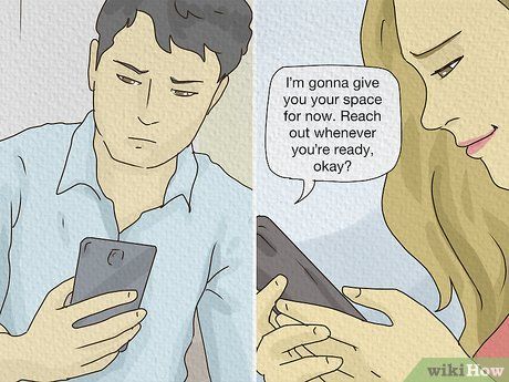Let him know you’re available to talk. While giving him space is important, avoid completely cutting off communication. Reassure him that you’re there for him when he’s ready to talk, creating a safe space for him to return to.