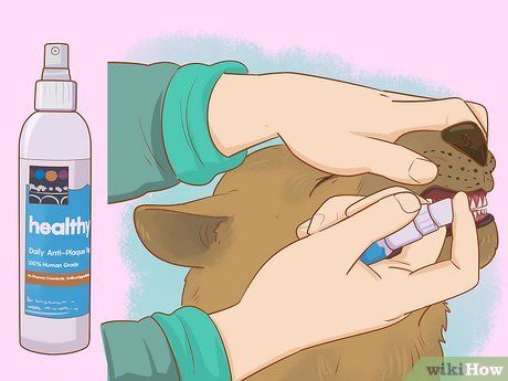 Dental sprays help remove plaque before it hardens into tartar. Calm your dog with gentle petting, then spray the solution onto their gums and teeth. The spray mixes with your dog's saliva, creating a film that dissolves plaque and calcium in tartar.