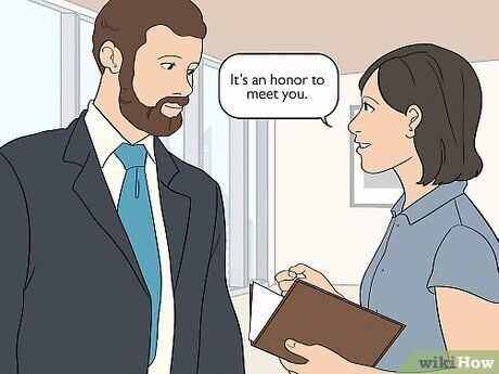 - Them: “Hi, it’s nice to meet you.” You: “Pleased to meet you. Your presentation was amazing.”