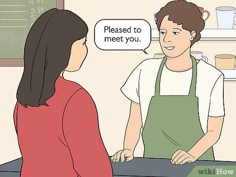 - Them: “Hi, I’m Greg. It’s nice to meet you.” You: “Hi, my name’s Sharon. It’s lovely to meet you!”