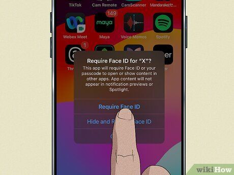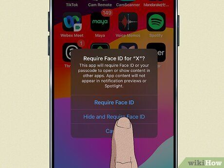 Select Hide and Require Face ID. Alternatively, you can choose Touch ID or Passcode.