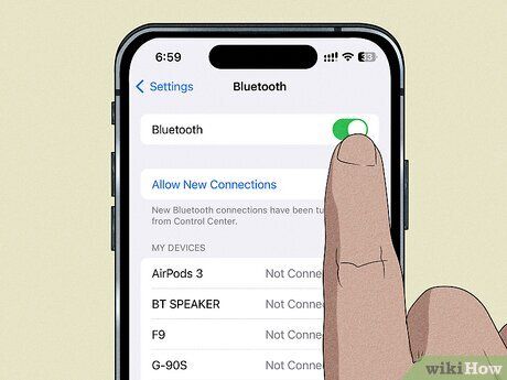 Activate Bluetooth on your iPhone. You can do this by swiping down from the top-right corner to open the Control Center and tapping the Bluetooth icon, or by navigating to Settings > Bluetooth and toggling it on.