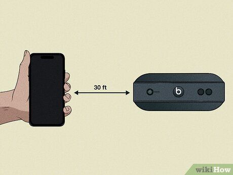Place your Beats speakers near your iPhone. For successful pairing, your Beats speakers need to be within Bluetooth range of your iPhone, which is approximately 30 feet.
