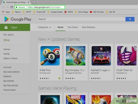 Access Google Play's web interface. Navigate to https://play.google.com/store/apps through Chrome to launch the full-featured Play Store environment.