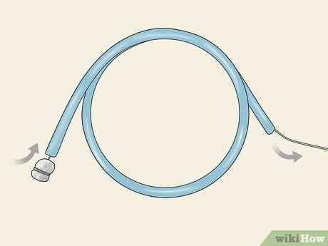 Thread the line through the drinking tube to absorb moisture. Insert the cotton end of the fishing line into the tube and push it through. Keep pushing until the cotton ball or cotton bud picks up any remaining moisture. Continue until the cotton comes out the other side of the tube.