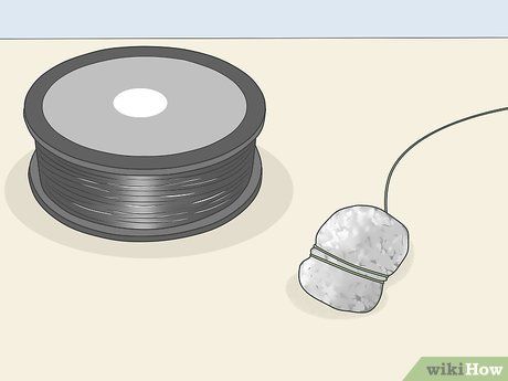 Attach a cotton ball to a piece of fishing line. Tie a knot around the cotton ball, ensuring it's securely fastened to the fishing line. If necessary, tie the knot multiple times for extra security. If you don’t have cotton balls, you can also use the tip of a Q-tip.