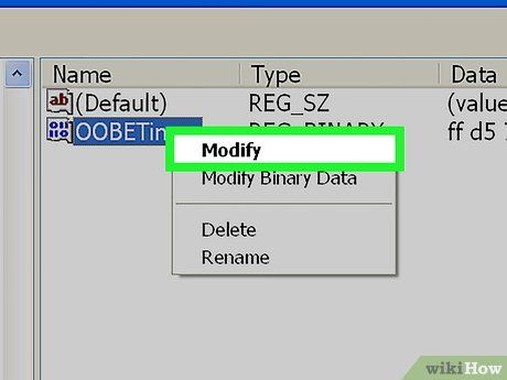 Select the "OOBETimer" entry. This entry will contain several random pairs and sequences of numbers.