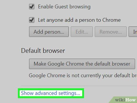 Show advanced settings. Scroll to the bottom of the Settings page and click on the link 'Show advanced settings...'. The page will expand to reveal additional options.