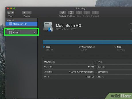 Select the external hard drive. In the top-left corner of the Disk Utility window, click on the name of the external hard drive.