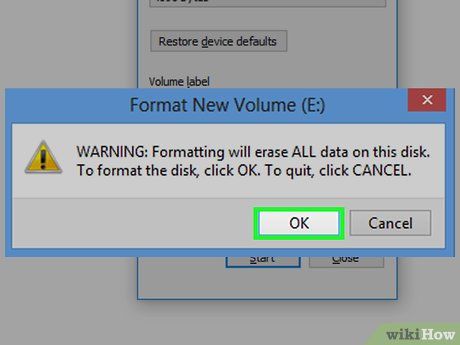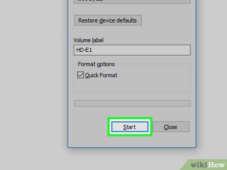 Click the Start button at the bottom of the window. Windows will begin formatting the external drive.