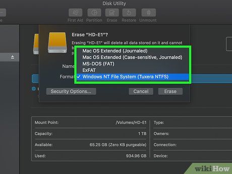 - NTFS — Select this option if you intend to use the hard drive exclusively on Windows computers.