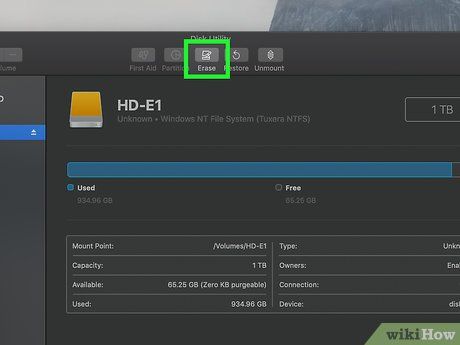 Click the Erase tab at the top of the Disk Utility window. A new window will pop up.