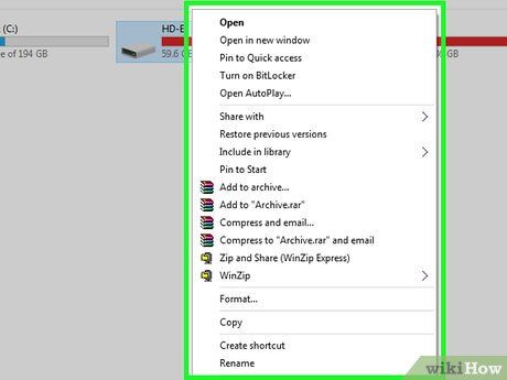 Right-click on the external hard drive’s name listed under the "Devices and drives" section. A dropdown menu will appear.