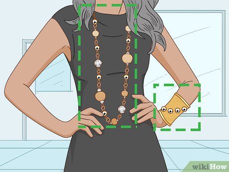 Wear jewelry that complements your beauty. Thoughtful jewelry choices can define your personal style. Sparkling accessories can divert attention and create the illusion of a slimmer figure. For example, long necklaces can make you appear taller and leaner, while bold, colorful bracelets draw attention to your wrists, making your entire body seem more slender.