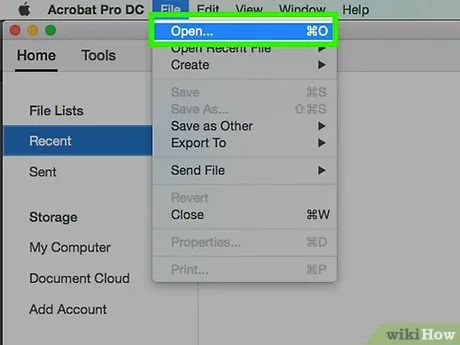 Open the PDF file in Adobe Reader. To do this, launch the red Adobe Reader app with the white stylized letter A icon. Then, click on File from the top menu bar, followed by Open..., select the PDF document you want to attach files to, and click Open.
