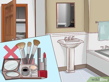 Don’t store makeup in the bathroom. Bathrooms may seem like an ideal place to keep makeup because of the large mirrors, but the heat and humidity can quickly damage your products – not to mention the germs. Instead, store your makeup in a cool, dry place, such as your bedroom.