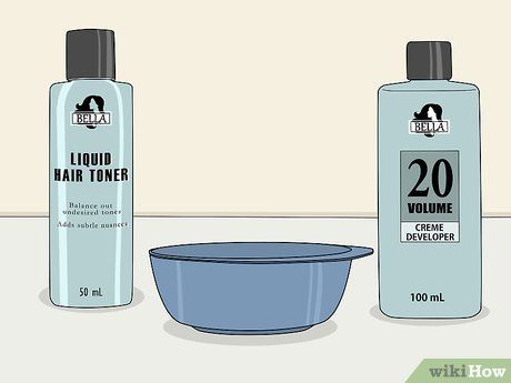 - Trộn toner với dung dịch trợ nhuộm cường độ 10 hoặc 20 theo tỉ lệ 1:2. Nếu tóc đen, bạn nên cân nhắc việc dùng dung dịch cường độ 40. Tuy nhiên, nên nhớ rằng dung dịch cường độ 40 rất mạnh và có thể gây bỏng nghiêm trọng nếu chạm vào da. Tìm sự chăm sóc y tế nếu bị bỏng hóa chất.