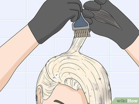 Bleach your entire head for an even color. Part your hair vertically down the middle, then horizontally to create four sections. Secure the upper sections with plastic clips. Start applying bleach to one of the lower sections, working from the ends toward the roots. Repeat with the other lower section, then move to the upper sections. Ensure the bleach is evenly distributed from roots to tips.