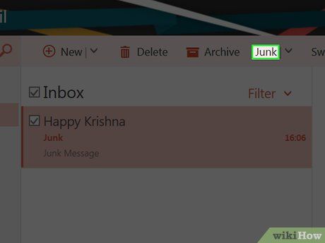 Click on Junk. This button is located in the options row above the Outlook inbox, to the right of the Archive folder. Clicking this button will move the selected emails to the "Junk" folder.