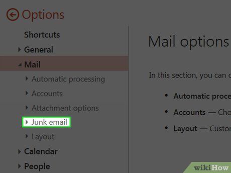 - If there are already indented options under Junk Mail, skip this step.