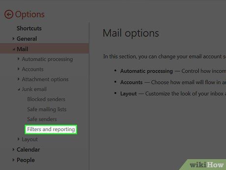 Click on Filters and reporting. This is the fourth and final option under the "Junk Mail" section.