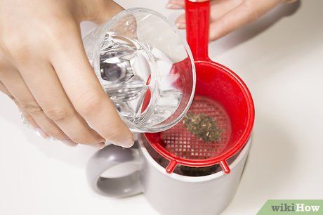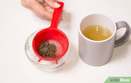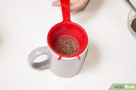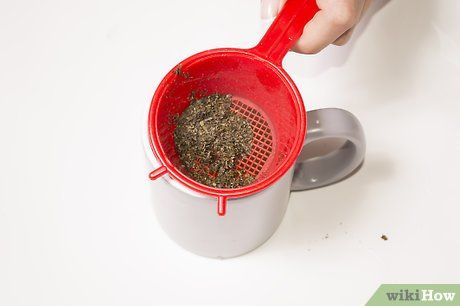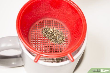 Place the tea in the strainer or infuser and set it into an empty cup or mug.