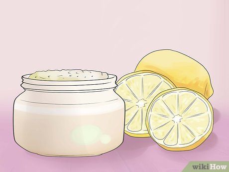 Use a lemon juice exfoliating scrub. This scrub can brighten your skin thanks to the natural whitening properties of citric acid and its ability to remove dead skin cells. Combine 2 tablespoons of brown sugar, 1 egg white, and 1 teaspoon of lemon juice. Gently massage the mixture onto your skin using circular motions. Leave it on for 10-15 minutes, then rinse with warm water and apply moisturizer.