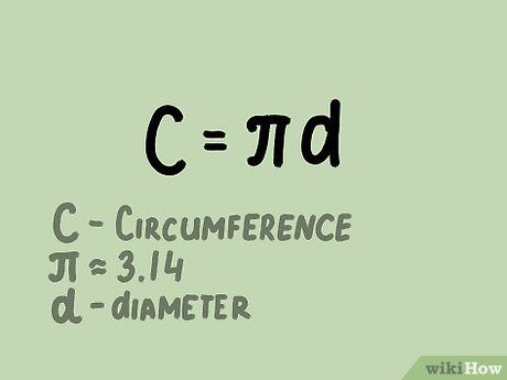 Write the formula for calculating the circumference of a circle based on the diameter. The formula is simple: C = πd. In this equation, "C" represents the circumference of the circle, and "d" is the diameter. To break it down, to find the circumference of a circle, multiply the diameter by pi. Enter pi into a calculator to get its numerical value, approximately 3.14.