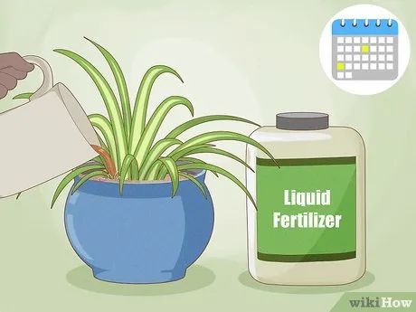Fertilize spider plants 1-2 times monthly during spring and summer. During the growing season, use a balanced liquid fertilizer for optimal results. Liquid fertilizers are more effective than granular ones. Follow the instructions on the packaging to determine the correct amount to apply. Avoid fertilizing in winter or when the plant has outgrown its pot.