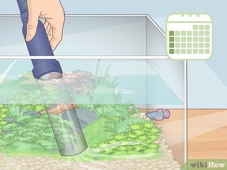 Perform a partial water change once a week. The water change cycle involves removing 10-20% of the tank's water and replacing it with clean, treated water. This helps reduce toxins and ammonia in the tank. At least once a week, you should remove some water and replace it with treated water to maintain a healthy environment for your Betta fish.