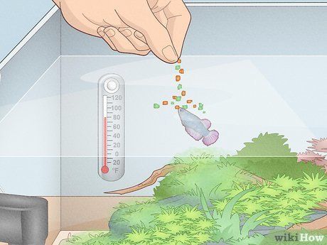 Cover the tank and keep it out of direct sunlight. Betta fish are avid jumpers! They can easily leap out of the tank and end up stranded outside! Always keep the tank covered. Additionally, ensure that the tank is placed in a spot with a stable temperature and avoid excessive direct sunlight to prevent overheating the water. Locations like tables or shelves are ideal for placing the tank, as long as direct sunlight isn't hitting it.