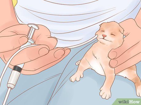 Give the kittens a milk replacer. Kitten milk replacement powder (such as Cimicat) can be purchased at veterinary clinics, large pet stores, or online. A high-quality milk replacer is KMR, which is similar to infant formula and contains ingredients similar to mother’s milk. The milk replacer comes with instructions on the amount of powder needed per feeding.