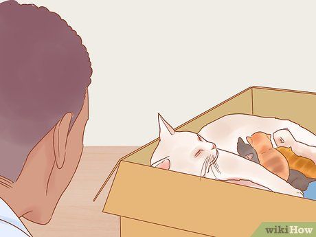 Prepare a quiet place for the birth. The mother cat will choose a location where she feels safe to give birth. You can help by finding a large cardboard box, turning it on its side, and lining it with heat-retaining, dry material—but don't be discouraged if the mother cat selects another spot. Her instincts will guide her to find a secluded and quiet area, such as under the bed, behind a couch, or inside a cupboard.