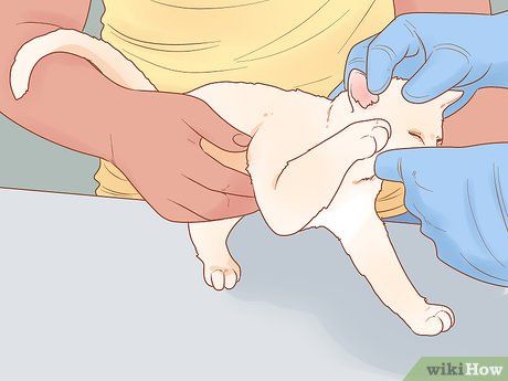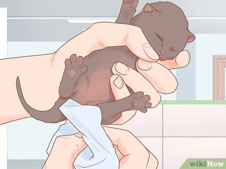 Stimulate the kitten to eliminate waste. Before and after each feeding, gently wipe the kitten’s genital area with a warm, damp cloth or gauze. This helps stimulate the kitten to urinate and defecate, as they are unable to do so on their own. Keep the kitten near the litter box and continue wiping its genital and anal areas after each meal. Do this until the kitten has finished urinating and defecating (when no more waste is expelled).