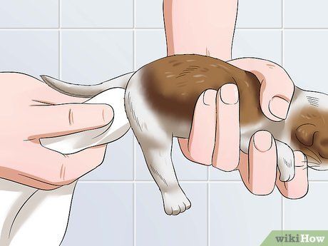 If the mother cat is no longer present, you'll need to assist the kitten with urination and defecation during the first few weeks of its life. Use a damp cloth or gauze to gently massage the kitten's genital area until it urinates and/or defecates. Immediately wash or dispose of the cloth and dry the kitten before returning it to its littermates.