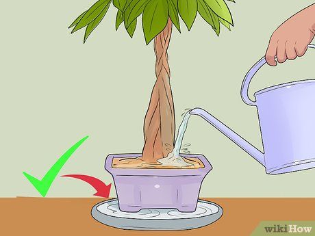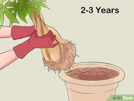 Plant the money tree in a relatively small pot. A pot that's too large for the tree can retain excess soil and moisture, potentially leading to root rot. When repotting, choose a pot that's slightly larger than the current one.
