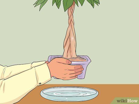 Empty the excess water in the saucer beneath the pot after watering. This prevents the plant from sitting in water, which could cause root rot. After watering, wait a few minutes for the water to drain through the holes into the saucer. Lift the pot and pour out the excess water, then return the saucer beneath the pot.