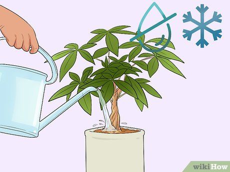 Water the plant less during winter. The money tree grows slower in winter due to reduced sunlight, and thus requires less water. During winter, wait an extra 2-3 days after the soil dries before watering again. Resume regular watering when spring arrives.