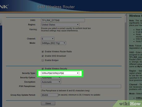 Scroll down and check the box for WPA-PSK/WPA2-PSK near the bottom of the page.