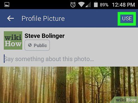 Click the Use button. This is located in the upper-right corner of the screen. Your new profile picture is now saved.
