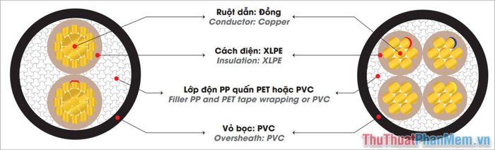 In Vietnam, the CXV wire code is the most common and widely chosen for running electrical wires from the pole to homes. The CXV wire is constructed with the following components: