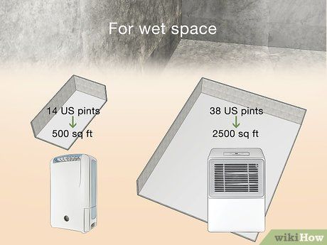 Buy a dehumidifier with a capacity of 6.6 – 16 liters for a wet environment. For wet environments (where water is seeping or "sweating" on the walls and floors), you'll need a more powerful dehumidifier. Choose the capacity based on the room size. For instance, the dehumidifier should have a capacity of: