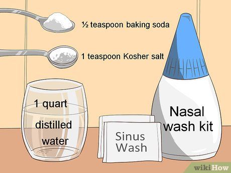 Purchase a saline nasal rinse or make your own. A saline solution helps alleviate symptoms of chronic nasal or sinus issues. Rinsing your nasal passages with saline reduces swelling, improves airflow, and clears sinus cavities. This method also helps remove mucus and relieve nasal congestion. You can buy a pre-made saline rinse at a pharmacy or prepare one at home.