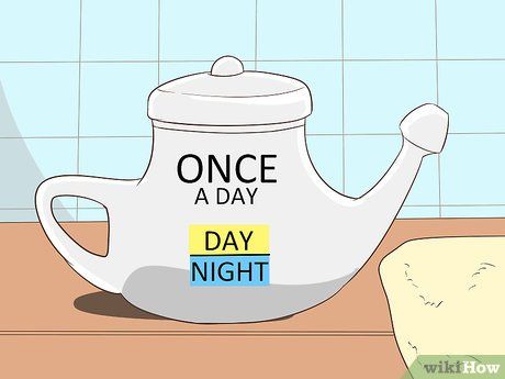 Rinse your nose with saline once a day, either in the morning or at night. If symptoms become more severe or a serious infection occurs, increase the frequency to twice a day.