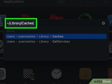 Enter ~/Library/Caches. Hit ⏎ Return to open the folder.