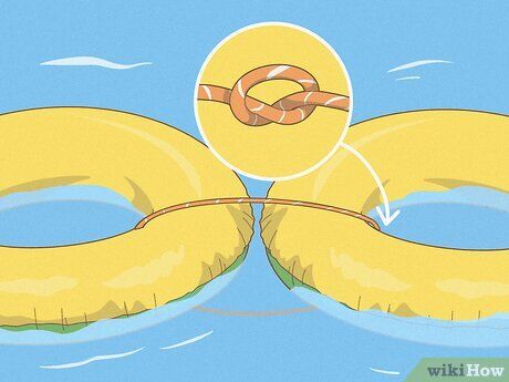 Attach your tube to any other tube. Depending on the number of people in your group, you might have 3 or 4 ropes linking your river tubes. Ensure each tube is connected to at least one other tube.